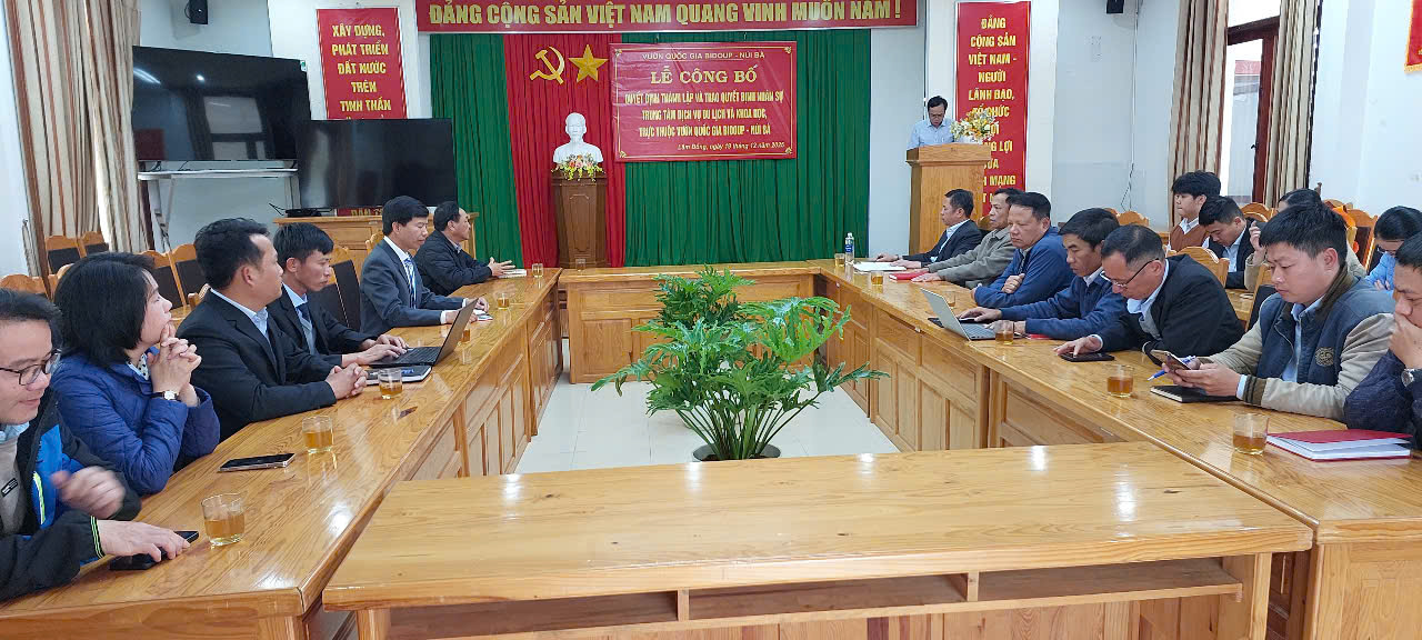 Tại hội nghị, lãnh đạo Vườn quốc gia Bidoup – Núi Bà đã công bố Quyết định của UBND tỉnh Lâm Đồng về việc thành lập Trung tâm Dịch vụ Du lịch và Khoa học trên cơ sở hợp nhất Trung tâm Du lịch sinh thái & Giáo dục môi trường và Trung tâm Nghiên cứu quốc tế rừng nhiệt đới; đồng thời công bố các quyết định về công tác nhân sự của Trung tâm mới thành lập nhằm sớm ổn định tổ chức bộ máy và triển khai thực hiện nhiệm vụ.